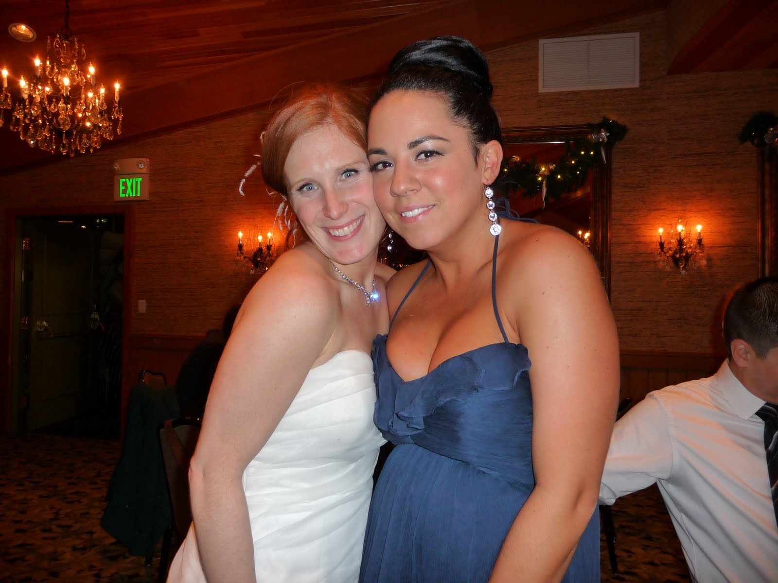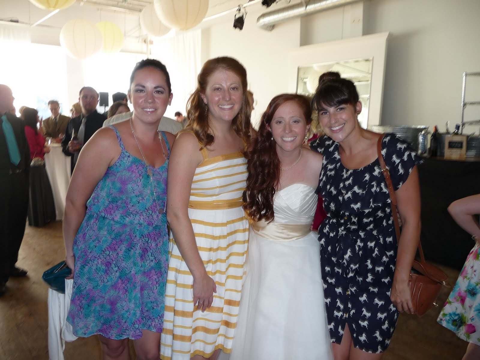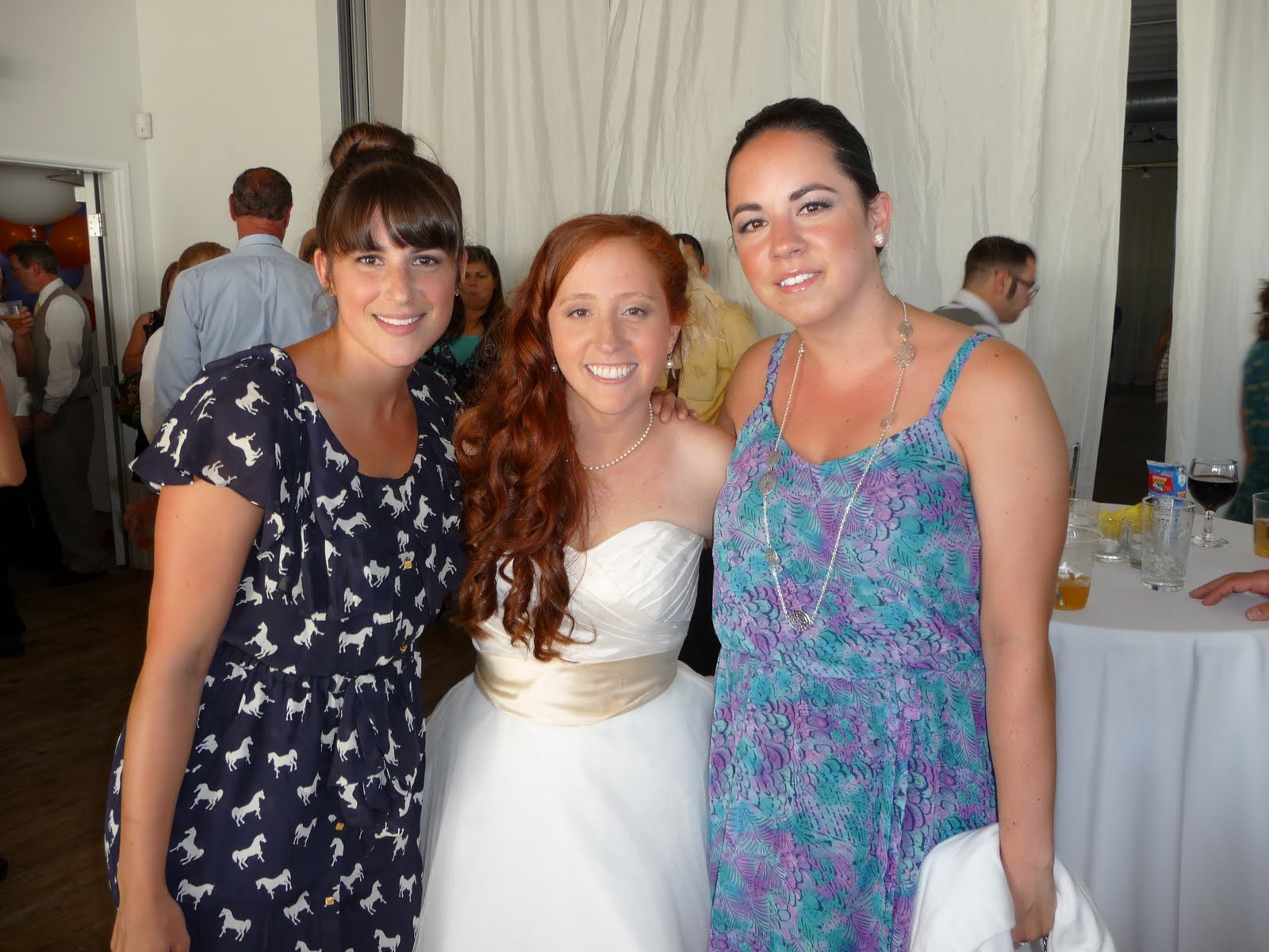Ahhh….ceremony time! On Sunday afternoon, Aaron and Laura capped off our weekend with a beautiful outdoor ceremony on the dock of the resort. Unfortunatley, we had spent all morning out at the island, not realizing that we would be completely out of running water for showers when we came back. I had to use two bottles of water to try and get the sand off me – I still ended up going to the wedding with tons of sand in my hair!Laura was delivered to the dock by boat and walked down the dock with her father – she was stunning in a floor length, ruffled collar wedding dress! It was a wonderful ceremony with readings from both sides of the family, and Laura’s brother even officiated! After the glass was broken, we spent the rest of the night dancing on the beach under the stars. Couldn’t get any better than that!