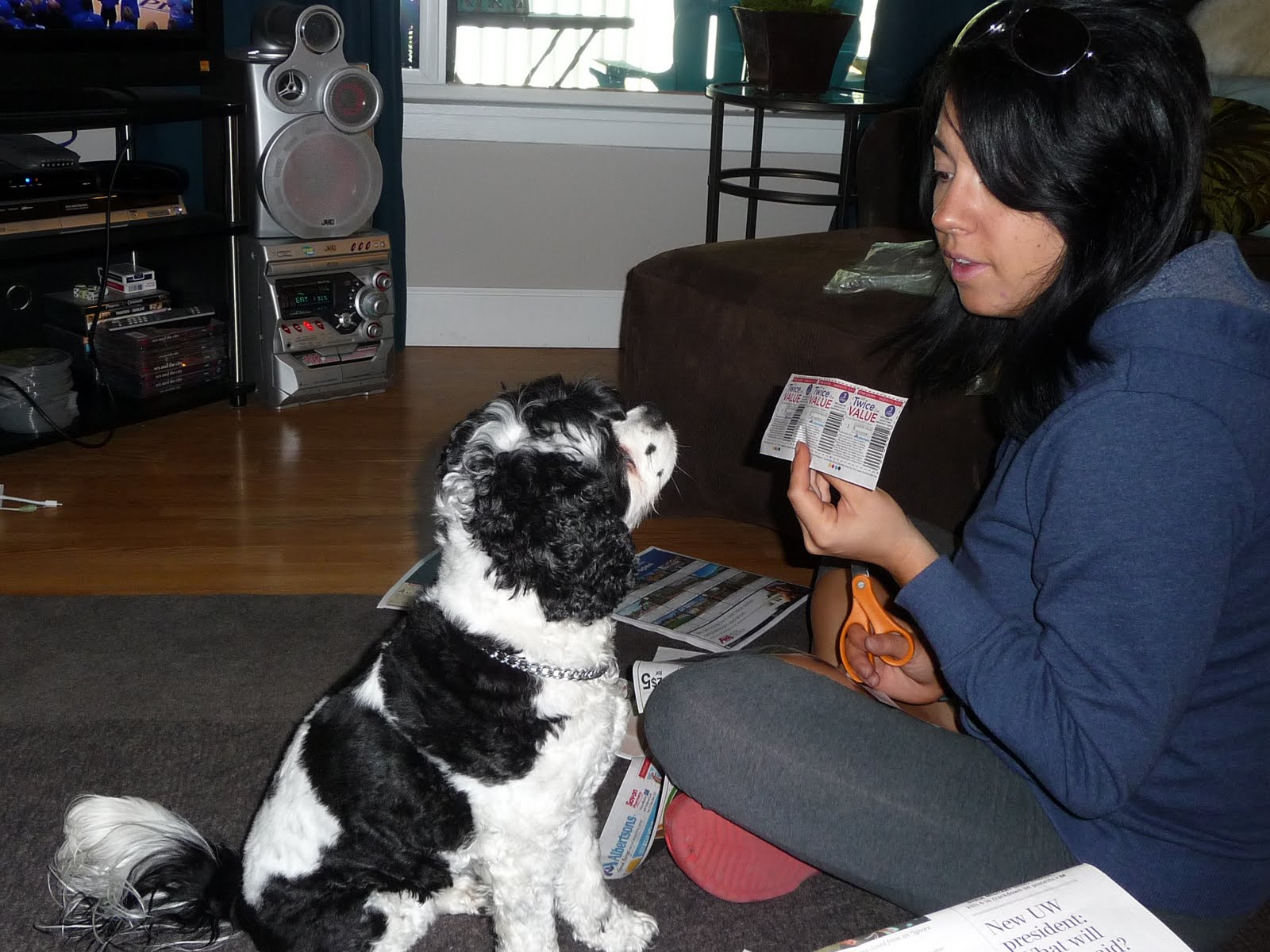 Me giving Stella her first coupon lesson. It’s all about the Alberston’s ‘Twice the Value’ coupons! Stella agrees.