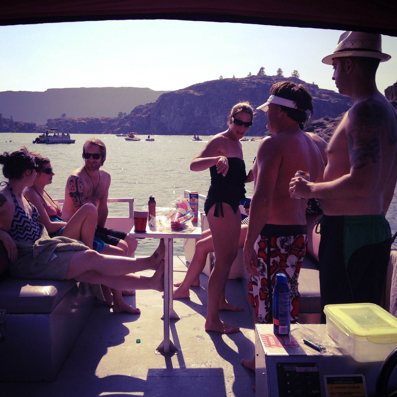 Enjoyin the party barge. |