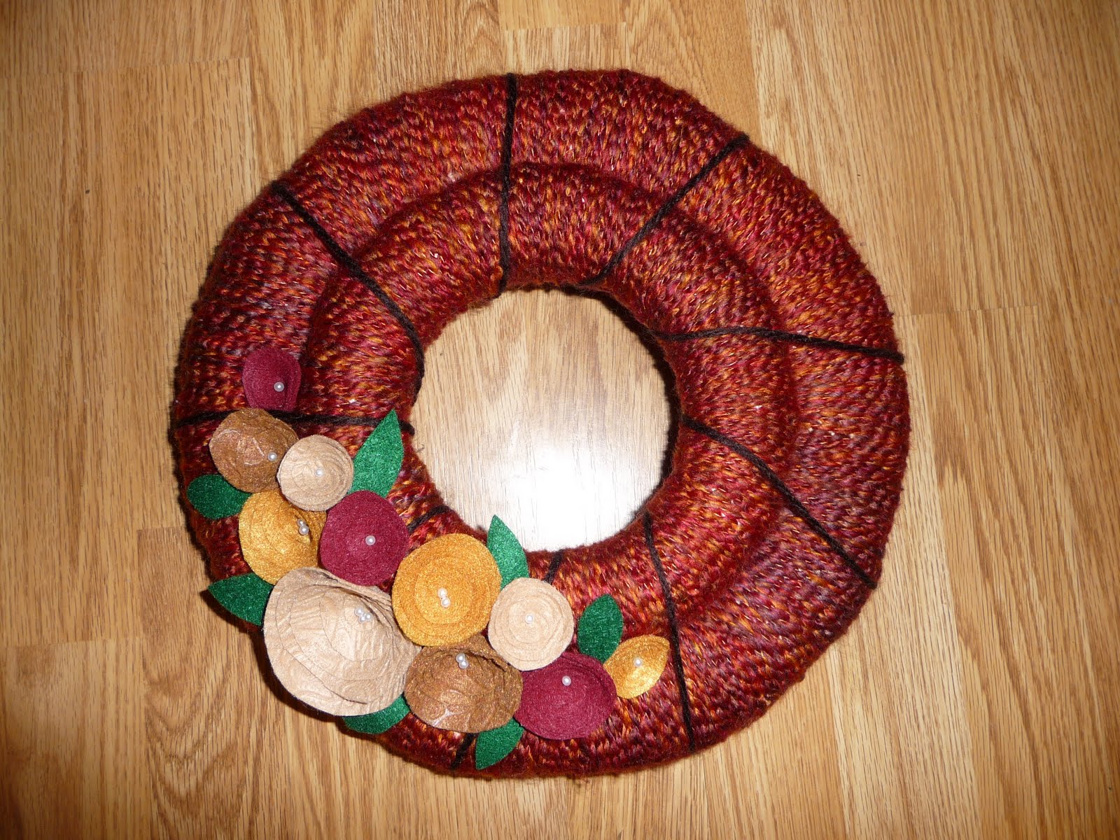 Finally finished my first yarm wreath over the weekend and promptly gave it to my Mom – I thought it would be a nice fall gift! It was funny giving her my art project. I felt like I was back in elementary school!
